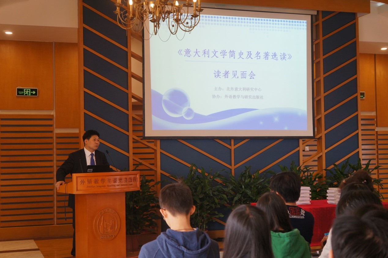 2016 年 3 月 17 日,由北外意大利研究中心与外研社共同主办的王军教授新作《意大利文学简史及名著选读》读者见面会在外研社国际会议报告厅隆重举行,首都高校意大利语专业师生及意大利文学爱好者 70 余人参加了活动。