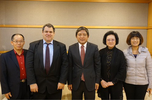 10月30日上午,匈牙利罗兰大学副校长、罗兰大学孔子学院匈方院长郝清新(Hamar Imre)访问beat365官网。校长彭龙会见了郝清新一行。