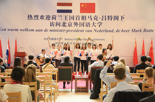 彭龙对吕特首相在紧张的访华行程中专门抽出时间访问北外表示欢迎和感谢,简要介绍了北外,特别是荷兰语专业的发展建设情况。他指出,北外的荷兰语专业不仅是中国培养荷兰语人才的最主要基地,同时也正在成为从事荷兰研究、传播荷兰文化的重要平台。
