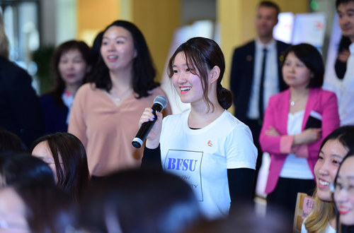 吕特与荷兰语专业学生和荷兰在华留学生进行了轻松愉快的交流,交流内容涉及文化、教育、经济、国际关系等方面,他耐心又不失幽默地回答了中外学生提出的问题。在谈到教育相关话题时,他指出,中荷两国教育虽然在形式上不尽相同,但都致力于在学习课本知识和勇于探索新途径之间找到平衡。