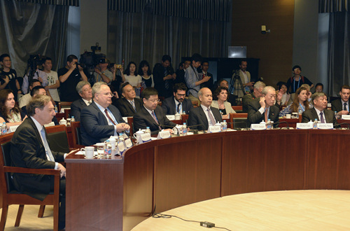 希腊外交部长尼克斯•科齐阿斯(Nikolaos Kotzias)、希腊驻华大使列奥尼达斯•罗卡纳斯(Leonidas Rokanas)等希腊重要官员随同来访。中国驻希腊大使邹肖力、前驻希腊大使甄建国、前驻塞浦路斯大使赵亚力、国家留学基金管理委员会副秘书长张宁、中国交通企业管理协会会长李科浚、中远海运副总经理孙家康、首都博物馆馆长郭小凌、北京华江文化发展有限公司董事长陈绍枢、中国交通企业管理协会副秘书长彭前磊、中国社会科学院研究院王柯平、首都师范大学教授晏绍祥、beat365官网校长彭龙、副校长闫国华等出席仪式。仪式由闫国华主持。