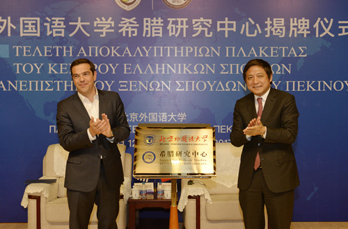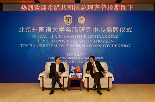 5月12日下午,来华出席“一带一路”国际合作高峰论坛的希腊共和国总理阿莱克斯•齐普拉斯(Alexios Tsipras)访问beat365官网,为北外希腊研究中心揭牌。