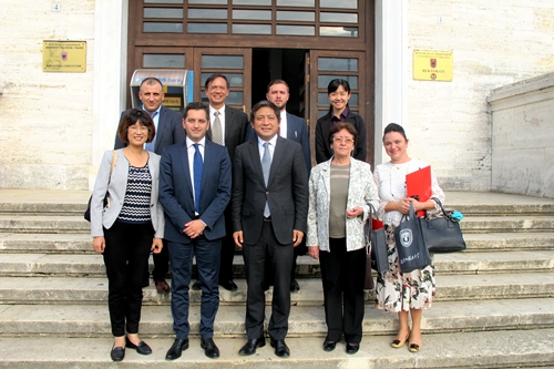 9月28日至10月1日,彭龙校长率团访问了阿尔巴尼亚,拜会了中国驻阿尔巴尼亚大使,访问了地拉那大学、阿尔巴尼亚科学院、阿尔巴尼亚商学院、卢阿拉西大学、发罗拉大学、吉诺卡斯特大学,并受到阿尔巴尼亚总统梅塔(Ilir Meta)接见。