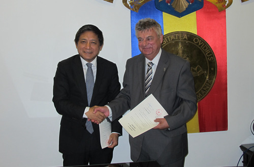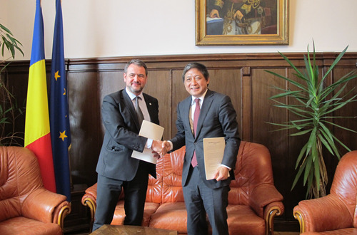 彭龙与布加勒斯特大学副校长续科斯特雷耶签协议