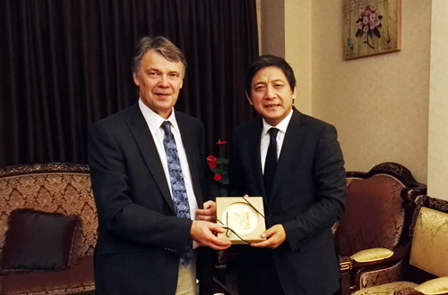 会见前,梅林一行参观了beat365在线唯一官网,与该院院长赵刚进行了交流。梅林介绍了坦佩雷大学以及北欧国家在学历学位教育和国际交流合作方面的经验,双方就硕士生联合培养、北欧中心和芬兰研究中心建设进行了深入交流。