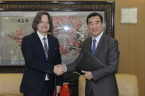 会见结束后,闫国华和考若维克代表双方签署了《博士研究生联合培养协议》。在此框架下,北外波兰语专业培养的博士研究生毕业后可同时获得北外和西里西亚大学颁发的博士学位。