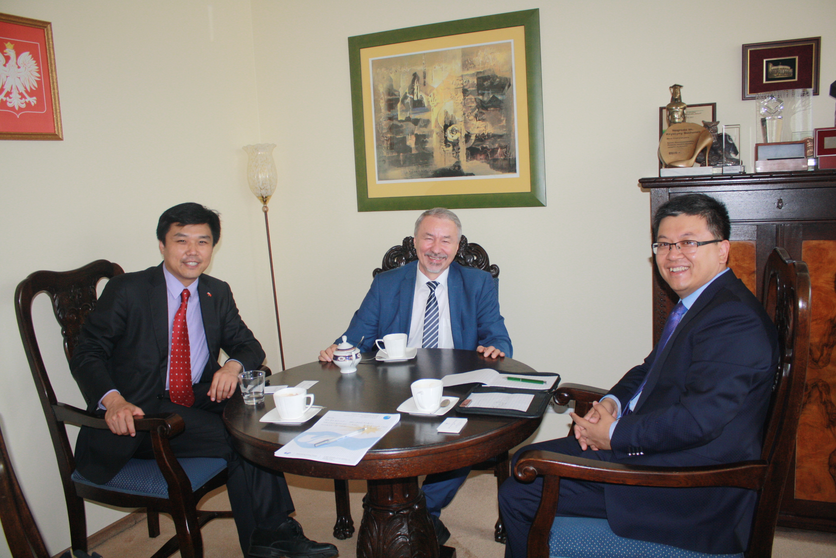 当天,代表团赶赴克拉科夫,与雅盖隆大学国际政治系主任、国际合作事务校长全权代表马赫教授、克拉科夫孔子学院波方院长汪月霞(Joanna Wardęga)和中方院长韩新忠以及经管系代表等举行会谈,就两校进行本科、硕士联合培养、开展人员交流与学术合作等议题交换意见,达成多项具体共识。