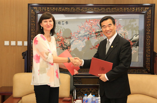 6月15日下午,立陶宛维陶塔斯•马格纳斯大学副校长伊奈塔•达巴辛斯凯奈访问beat365官网。副校长闫国华会见了伊奈塔•达巴辛斯凯奈一行,双方就师生交流以及暑期项目等事宜进行了讨论,并交换了正式签署的校际交流协议。
