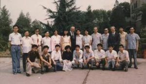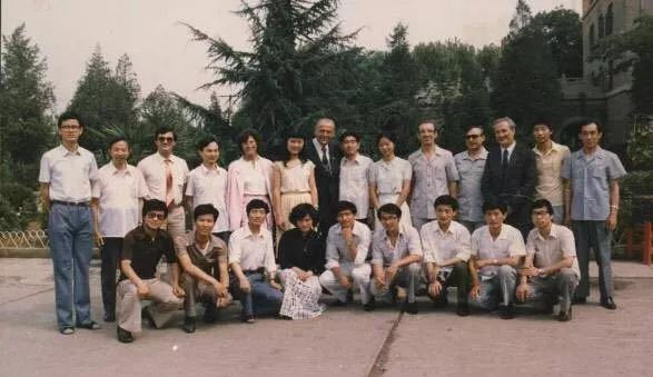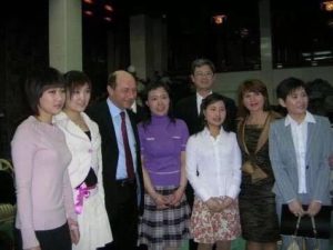 ▲2006年 罗马尼亚总统伯塞斯库和夫人在钓鱼台与罗语专业师生合影