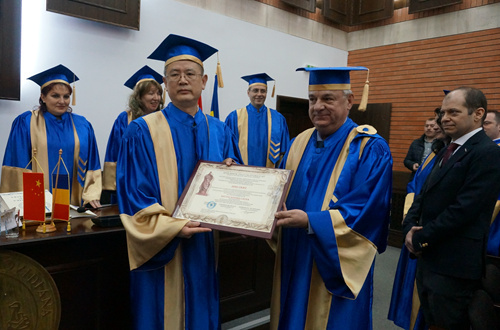 ▲2017年 罗马尼亚奥维德大学授予丁超教授名誉博士学位