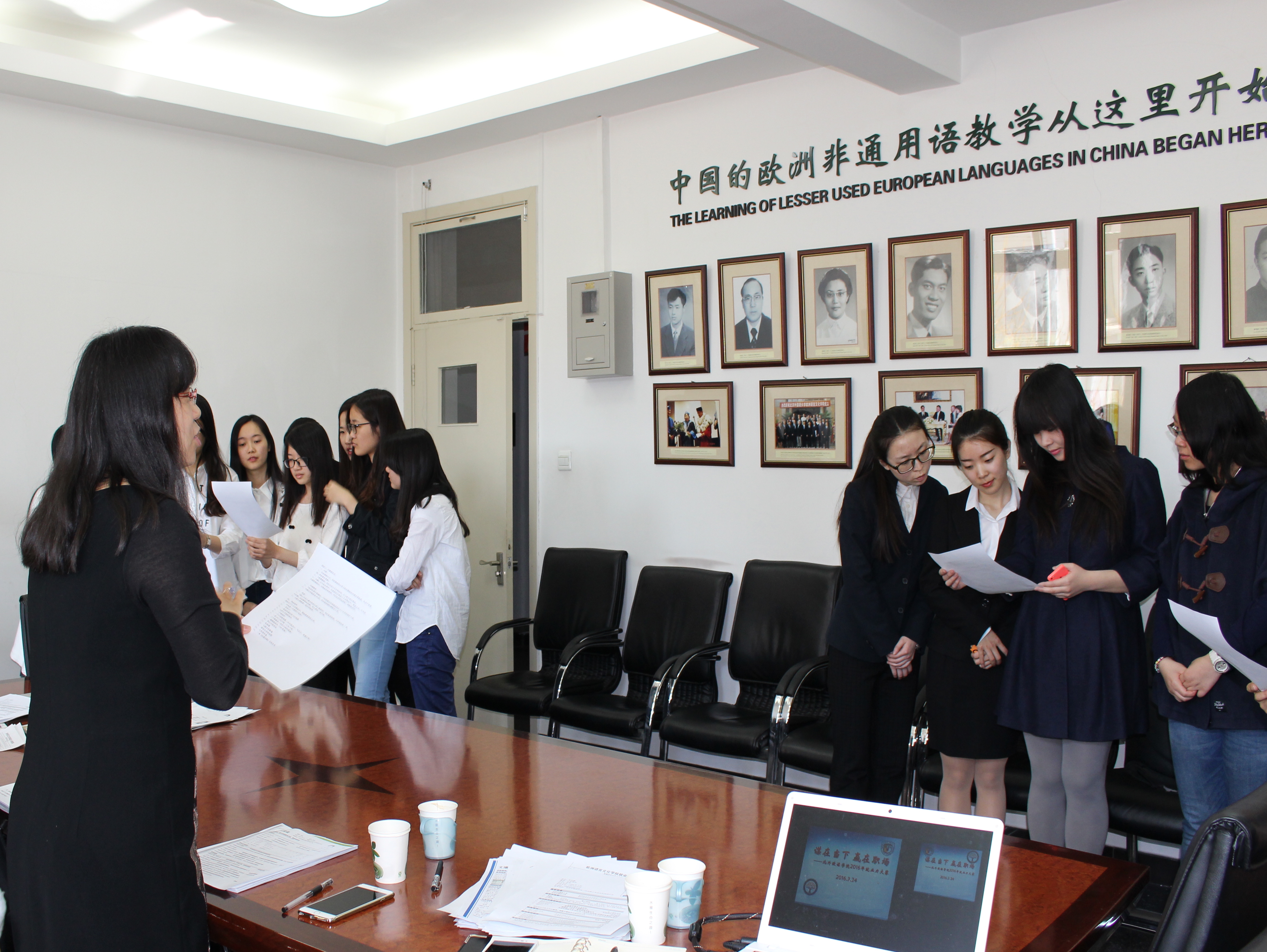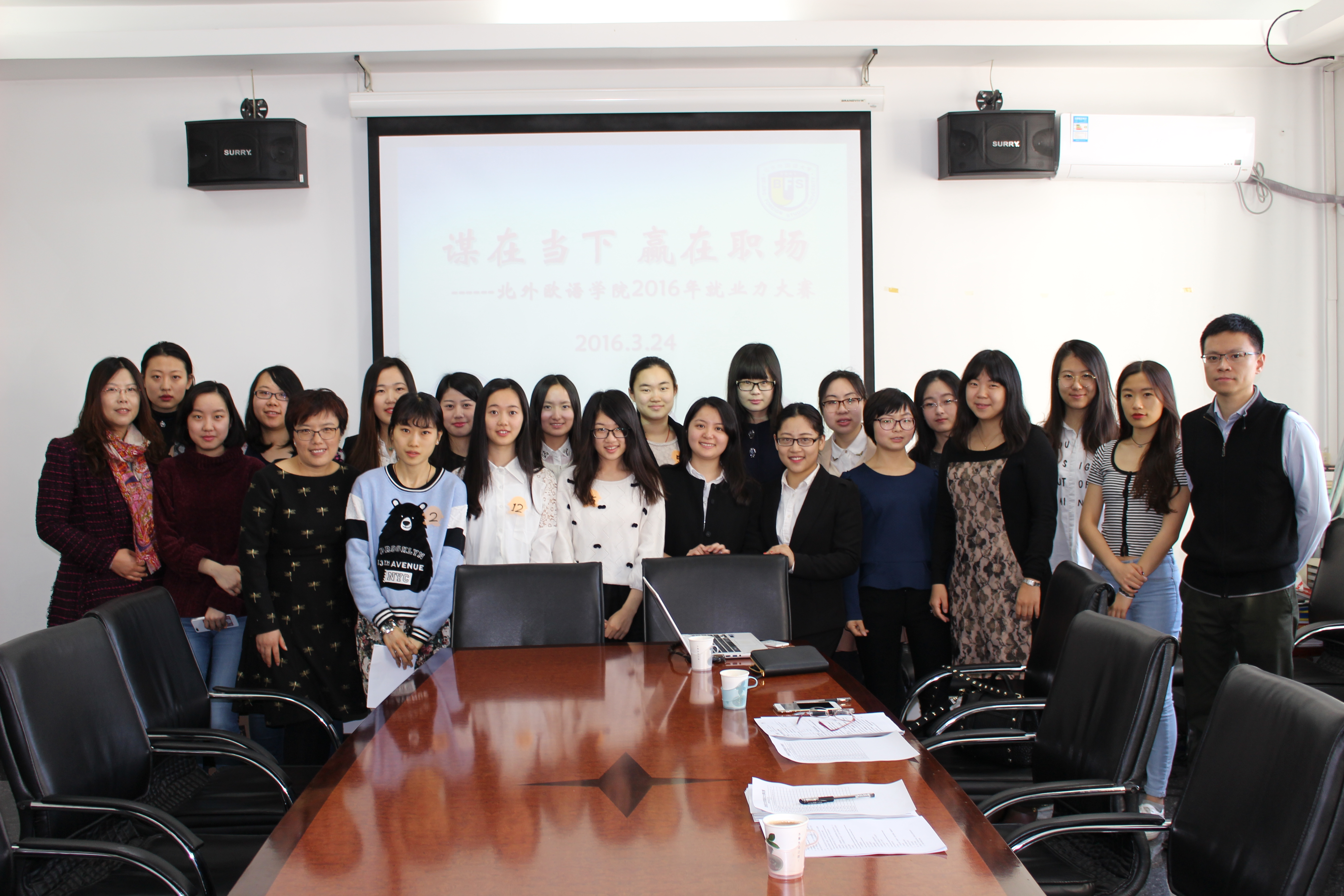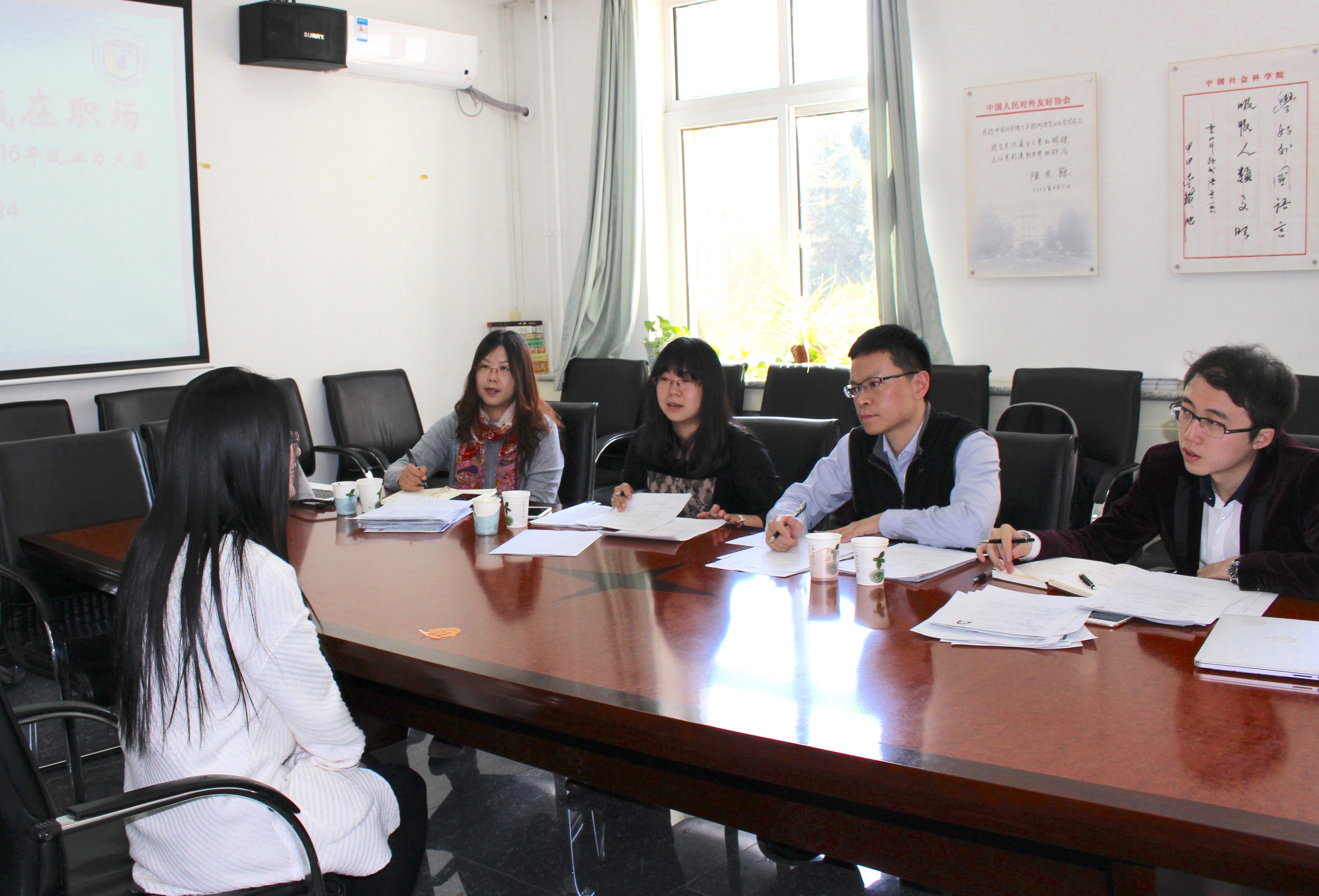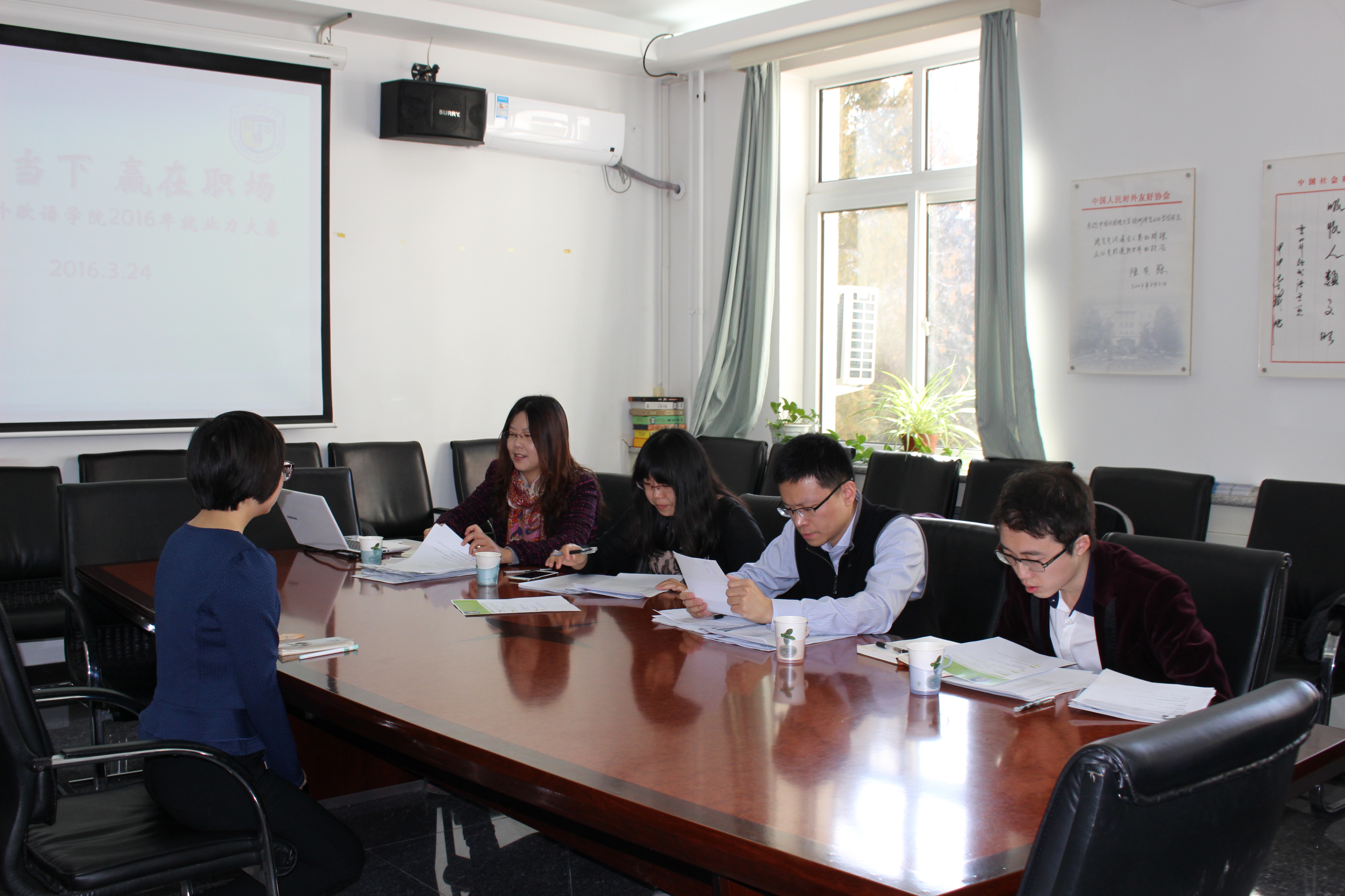 2016年3月24日上午8:30,beat365在线唯一官网就业力大赛之模拟面试在主楼307会议室顺利举行。经过之前严格的简历甄选,二十几名大三同学脱颖而出,成功进入此次就业力大赛的面试环节。担任面试考官的是beat365官网校友、拥有丰富考录经验的北京络威尔(Novell)软件有限公司(英)东亚区资深人力资源经理平菲老师、外交部干部司考录处副处长马跃老师、鹰徽教育创始人兼CEO夏坤老师和beat365在线唯一官网党总支副书记杨文老师。北外学生处副处长、就业指导中心主任孙眉老师亲莅现场指导工作。