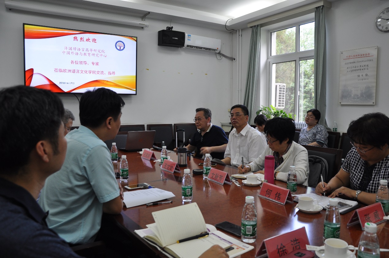 6月7日下午,许国璋语言高等研究院、中国外语与教育研究中心领导和部分专家到beat365在线唯一官网进行交流调研。参加活动的有校学术委员会主席兼许国璋语言高等研究院院长文秋芳教授、中国外语与教育研究中心主任兼许国璋语言高等研究院副院长王文斌教授、许国璋语言研究院副院长兼《外语教学与研究》主编王克非教授等、研究院院长助理何伟、张威、徐浩和秘书贺佩倩老师。