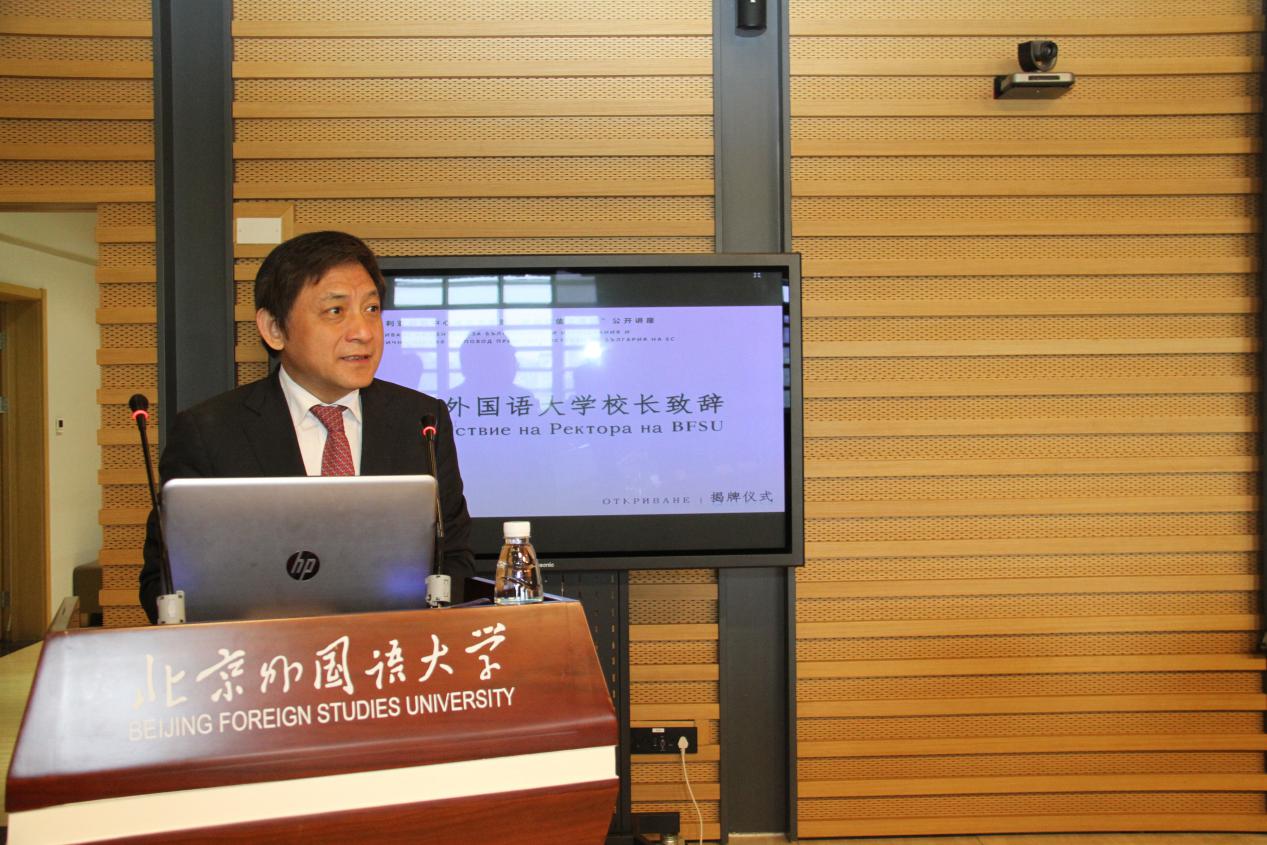 在揭牌仪式上,beat365在线唯一官网校长彭龙发表讲话。他提到,北外目前已开设欧盟28个成员国中24种官方语言,同时也开展了对各国语言、文学、社会、历史、文化等各方面的研究,是中国培养通晓欧洲各国语言人才的重要基地,也是中欧人文教育交流的重要窗口。校长曾到访保加利亚,对那里旖旎的自然风光、丰厚的历史文化底蕴和友好热情的人民印象颇深。他希望北外保加利亚研究中心的成立将进一步推动中保各领域交流,努力服务“一带一路”倡议建设和“中国——中东欧合作”。