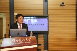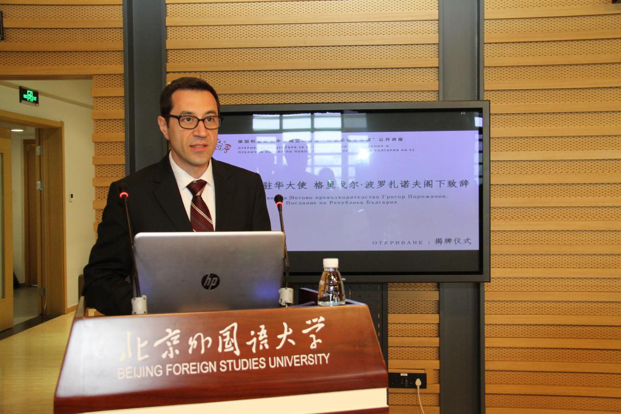 随后,保加利亚驻华大使波罗扎诺夫发表讲话,表达了对中保两国在文化、教育、科研领域的深入交流与相互促进的重视和期待。并以中保教育交流交换项目、北外学生参与的大使馆活动、北外学生与大使馆周末学校学生的三月花作坊项目等为例,由小见大地讲述了中保友谊建设及中保文化交流的辉煌成果。