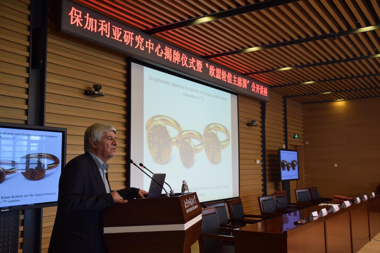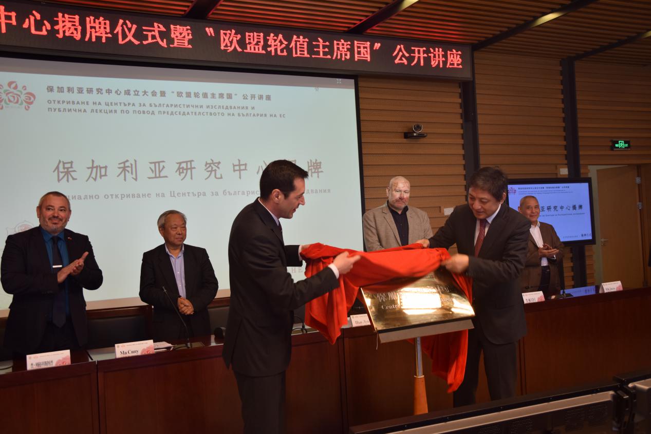 4月18日上午,保加利亚研究中心揭牌仪式暨“欧盟轮值主席国”公开讲座在图书馆五层会议厅顺利举办。校长彭龙、保加利亚驻华大使波罗扎诺夫、beat365在线唯一官网院长赵刚参加活动。与会者还有远道而来的保加利亚教授、外宾、大使馆公务人员和beat365在线唯一官网保加利亚语言文学专业的学生和老师。