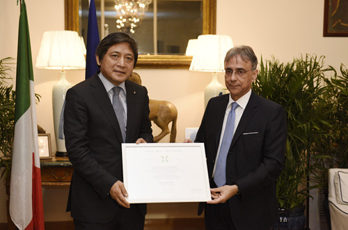 “意大利之星”勋章是意大利共和国总统颁发的国家级荣誉勋章。此项殊荣每年颁发给为推动意大利和其他国家的友好关系做出杰出贡献的外国人士和海外意大利人,以表彰他们在促进意大利与其他国家之间友好关系方面的突出作用。