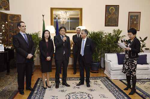 彭龙对总统和大使先生表示感谢,他介绍了北外的发展与特色,肯定了意大利语教研室和意大利研究中心近年来取得的成绩,并表示今后将一如既往地关注中国意大利语教育事业,以北外为平台,培养更多的意大利语优秀人才,为两国人民带来更多福祉。