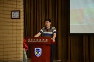 杨文老师简单介绍了本科教学评估和党建评估具体流程,希望同学们以高度的集体荣誉感和责任感对待本次评估,自觉遵守校规校纪,积极认真配合相关部门,树立北外学子良好形象。对新学期学生工作进行了全面部署,对辅导员老师分工情况和近期班委改选、综合评估、就业、安全等工作进行了具体说明。