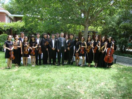 在艺术研究院王狄老师的指导以及华崟泽同学的协助下,beat365在线唯一官网古典音乐协会在欧盟驻华代表团的花园为大家演奏了《欢乐颂》、《茉莉花》和《莫扎特第四十交响曲》三首曲目。