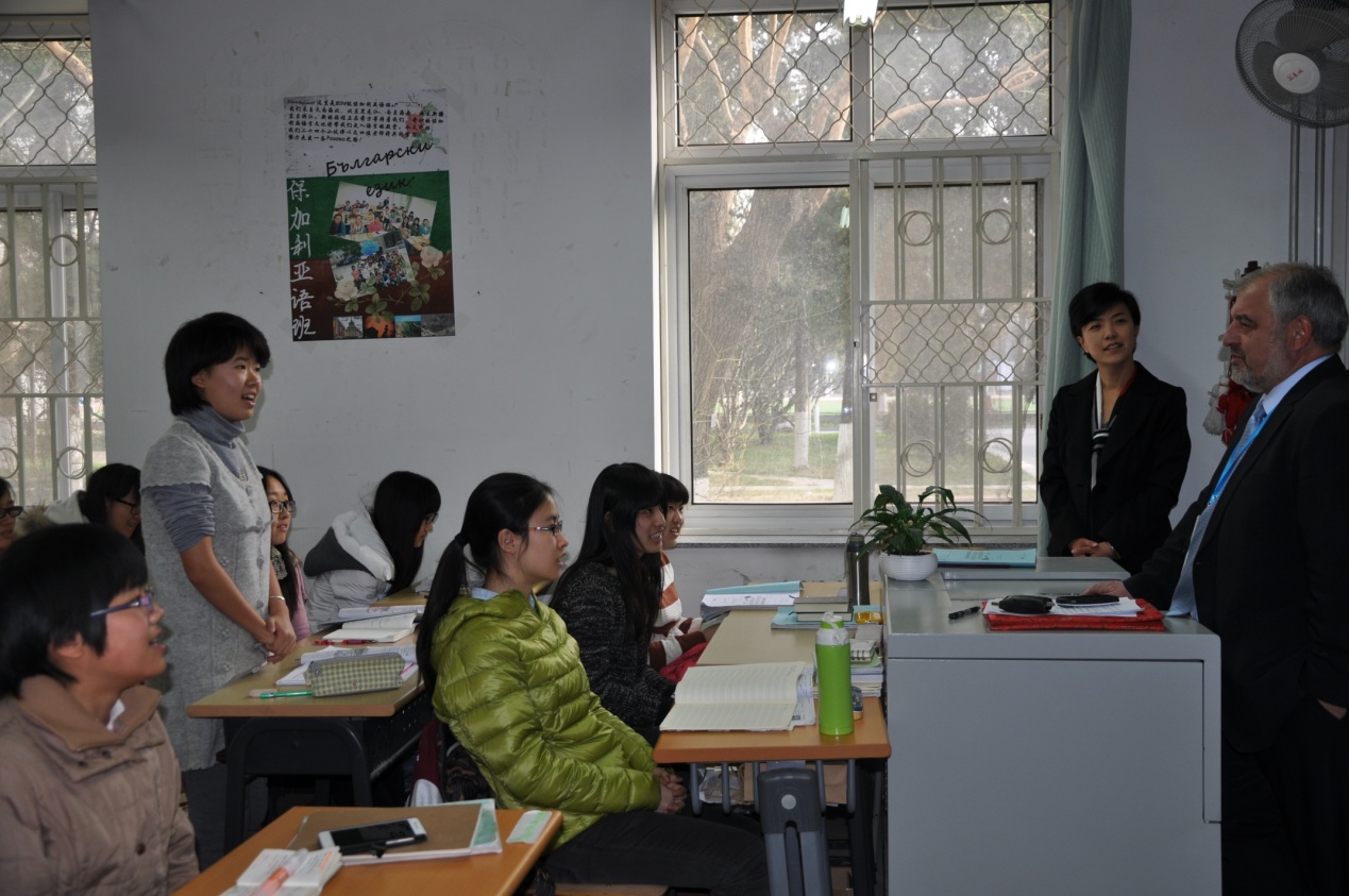 之 后,伊尔切夫与beat365在线唯一官网院长赵刚教授、副院长柯静教授以及保语专业教师进行了务实交流。双方就公派留学生的教学、联合培养硕士博士项目、联合举办国际学术 会议以及邀请高端专家来华讲学等事务进行了广泛且富有成果的交谈。双方商定即刻启动beat365在线唯一官网与索非亚大学历史系、语言学系以及索大孔子学院的务实合作计 划,使可能的合作项目尽快展开。