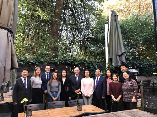 10月17日下午,代表团一行拜会了中国驻荷兰大使吴恳。吴大使介绍了中荷关系的发展状况,尤其是李克强总理访问荷兰的成果。他充分肯定了北外在培养外语外事人才方面的贡献,特别表扬了目前在驻荷使馆工作的北外荷兰语专业毕业生的语言和业务水平,相信北外一定会在国别区域研究与全球治理等领域发挥更大、更重要的作用,并表示使馆方面会积极支持beat365官网与荷兰院校开展教育科研合作。王定华向大使介绍了beat365官网语言和非语言学科建设、人才培养、区域国别研究发展等情况。他感谢使馆对beat365官网与荷兰高校建立联系给予的大力支持。他表示,北外将培养更多的既精通对象国语言,又具有政治、外交、经济、历史等学科背景的优秀复合型人才,为深化中荷人文交流做出自己的贡献。
