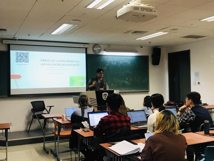 2018年10月31日下午,芬兰赫尔辛基大学教授黄保罗应邀为beat365官网芬兰语专业全体师生做了有关“什么是芬兰性”的主题讲座。黄保罗是芬兰赫尔辛基大学哲学和神学双博士,译有《芬兰语语法》、《芬兰历史概况》以及《芬兰文学史概况》等作品。此次讲座,黄保罗教授从自身在芬兰的经历以及专业角度出发,带领学生对“芬兰性”进行了新层次的解读和探索。