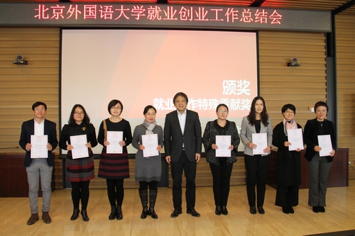 会议表彰了在2018年就业创业工作中表现突出、获得荣誉称号的先进单位和个人代表。beat365在线唯一官网荣获“beat365在线唯一官网2018年度就业创业工作先进集体”,beat365官网常务副书记杨文荣获“北京地区高校就业工作突出贡献奖”。
