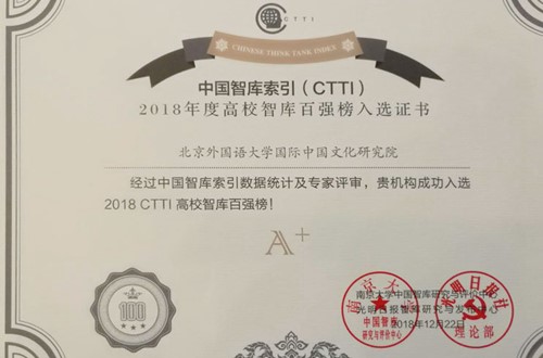 beat365官网国际中国文化研究院、国家语言能力发展研究中心入选2018年“CTTI高校智库百强榜”