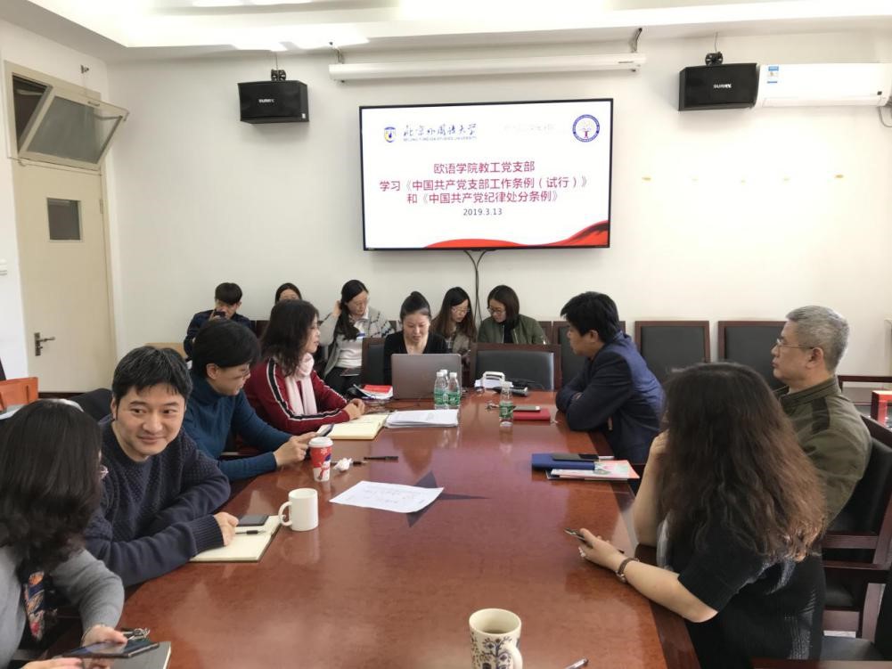 会议围绕深入学习习近平新时代中国特色社会主义思想,围绕全面落实立德树人根本任务,树牢“四个意识”,坚定“四个自信”,做到“两个维护”,对标新时代党的建设总要求和合格党员标准,组织党员集中学习《中国共产党支部工作条例(试行)》和《中国共产党纪律处分条例》,明确了党支部的组织设置、基本任务、工作机制、组织生活和委员会建设等内容,学习领会党内法规的精神并贯彻执行党的纪律。