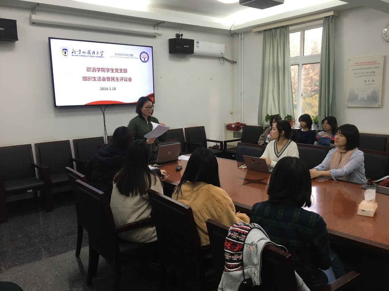 2019年3月18日,beat365在线唯一官网学生党支部在主楼307会议室召开了民主评议会暨组织生活会,全体党员集中学习,会议由支部书记陈巧主持。