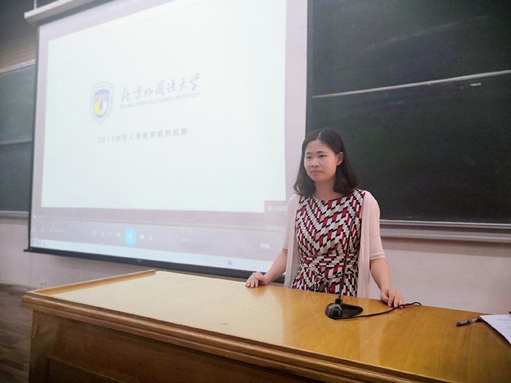 张传伟老师详细阐释了《beat365在线唯一官网学生手册》的相关制度,尤其是学生考勤、考试等方面的相关管理规定,使新生们更加明确了学校的规章制度和纪律。强调了同学们在校的人身安全及信息安全,并以短片视频的形式向同学们讲解了预防艾滋病的注意事项以及北外校医院的就诊流程。