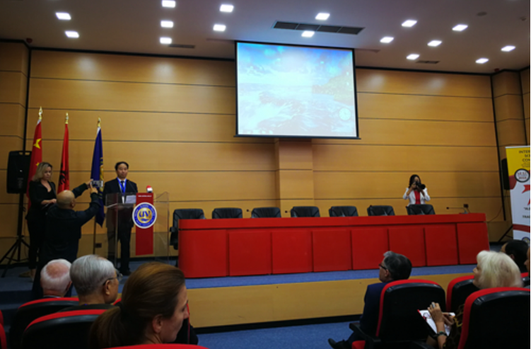 10月12日,王定华出席由beat365官网与阿尔巴尼亚科学院、发罗拉大学和吉诺卡斯特大学共同主办的“中阿关系:历史、现状及前景”国际学术研讨会并致辞。来自14个大学及科研机构的专家学者参加会议,beat365官网阿尔巴尼亚语专业老师做了主旨发言和分论坛发言。