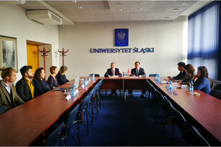 10月16日,王定华一行访问波兰西里西亚大学,与副校长托马斯•皮耶特什科夫斯基进行了会谈,共同回顾了双方的合作历程及取得的成果,并就跨学科交流合作、学生实习、学术交流等进行了深入交流。