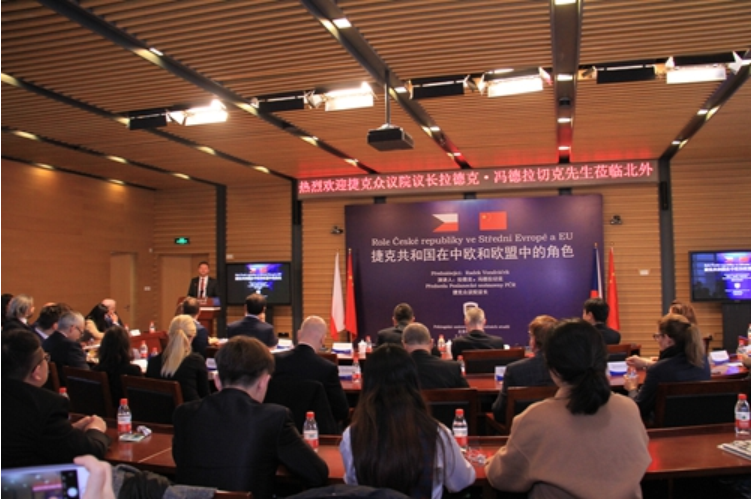 冯德拉切克以“捷克在中欧地区及欧盟中的角色”为题发表演讲。他指出,捷克共和国工业实力强大,在恪守欧盟政策的同时,奉行开放的贸易政策。中国在基础设施建设方面居于领先地位,参与“一带一路”倡议有益于捷克经济的发展。中国是捷克在亚洲最大的贸易伙伴,捷克愿意继续加大对华合作,增进两国人民的相互了解和友谊。在互动环节,冯德拉切克回答了“捷克是否有意加入欧元区”“英国脱欧对捷克的影响”“对中捷关系作何展望”等问题。