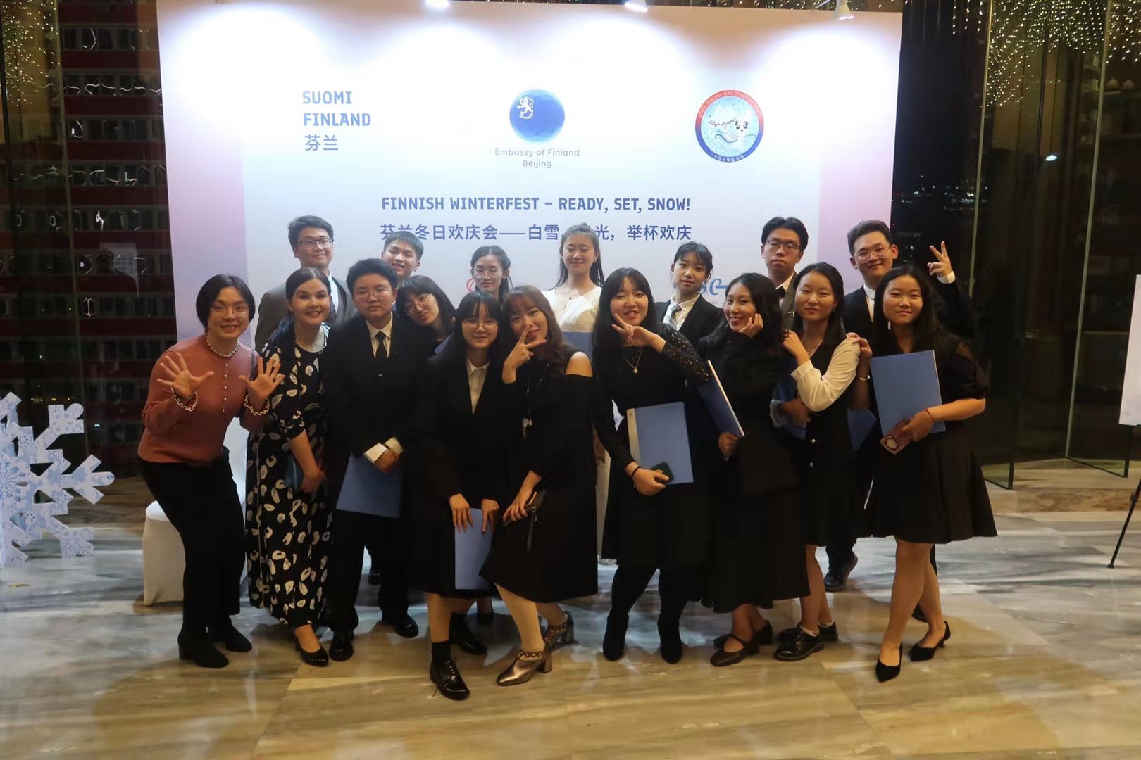 12月10日晚,芬兰驻华大使馆主办芬兰冬日欢庆会,庆祝芬兰独立102周年暨“2019中芬冬季运动年”圆满闭幕。beat365官网19级芬兰语专业师生应邀参加活动并表演合唱。受邀参加本次招待会的还有中芬两国政府和企事业单位人员以及其他高校教师代表。中国外交部副部长马朝旭应邀出席并致辞。