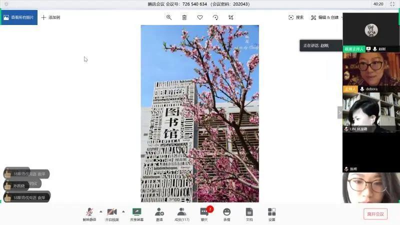 在会议最后,赵刚院长通过屏幕共享为全体学生展示了春日里北外校园繁花似锦,满园春色的照片,缓解学生们的思念之情。赵刚表示,春日的校园虽然少了同学们的欢声笑语,但永远是学生们的家,静静等候海外同学们早日归来。