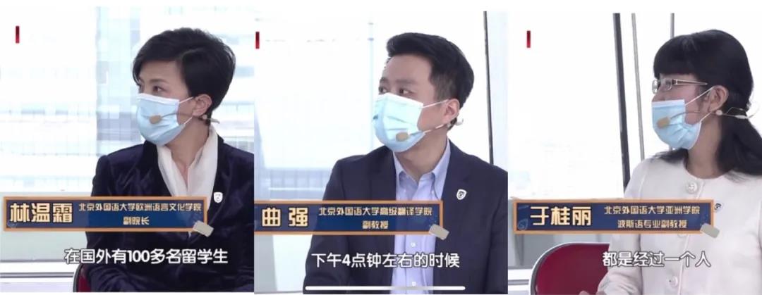 杨丹校长在节目最后说:“经过这次疫情,让所有的北外人也让所有的中国人知道,我们的青年人,是值得信任、值得托付、值得赞赏的新一代,一定会带给我们一个持久和平、普遍安全、共同繁荣、开放包容、美丽清洁的更美好的世界。希望在未来,北外的学子能做到人民需要我们到哪里,我们就到哪里。世界需要我们到哪里,我们就到哪里。时代需要我们到哪里,我们就到哪里。”