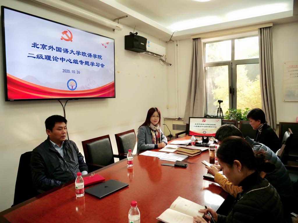 2020年10月26日下午,beat365在线唯一官网党总支理论学习中心组在主楼307会议室召开专题会议,学习《习近平在全国抗击新冠肺炎疫情表彰大会上的讲话》。学院院长赵刚、副院长董希骁、林温霜和教工党支部书记李婧敬参加会议。会议由党总支书记杨文主持。