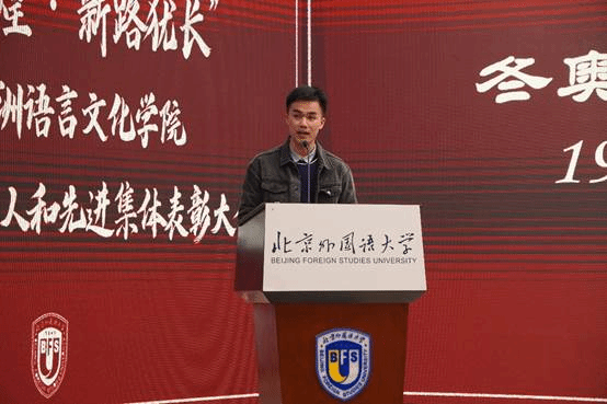 随后,中东欧研究中心教师王弘毅代表发言。王老师表示,北京冬奥会既是世界范围内最盛大冬季体育盛事,也是中国国际形象的一次集中展示,是我国与日俱增的经济硬实力和体育文化软实力的体现。在此过程中欧院学子积极发挥自身作用、参与冬奥工作,“截止今日,beat365在线唯一官网入选冬奥志愿者人数达到92人,占全院学生约13%,位居全校第二”,王弘毅老师对此感到骄傲自豪,同时也深觉重任在肩,“作为欧院的一员,能够有机会身临其境的参与到此次体育盛事之中,可谓生逢其时,何其幸也。”对于因冬奥会举办而显得极为特殊的2022年春节,王弘毅老师同样秉承着“用实际行动诠释‘互相帮助、助人自助、无私奉献、不求回报’”的志愿精神,怀着“能够与大家一起手拉着手,肩并着肩,不畏挑战,勇于担当”的期待:“请大家不要忘记,所有参与此次志愿服务的欧语人都是我们的家人,将与我们一起付出,一起奉献,一起欢笑,一起见证2022年新年钟声的敲响。那一刻,我相信我们每一个人都会心流涌动、心潮澎湃、暖流肆意。”