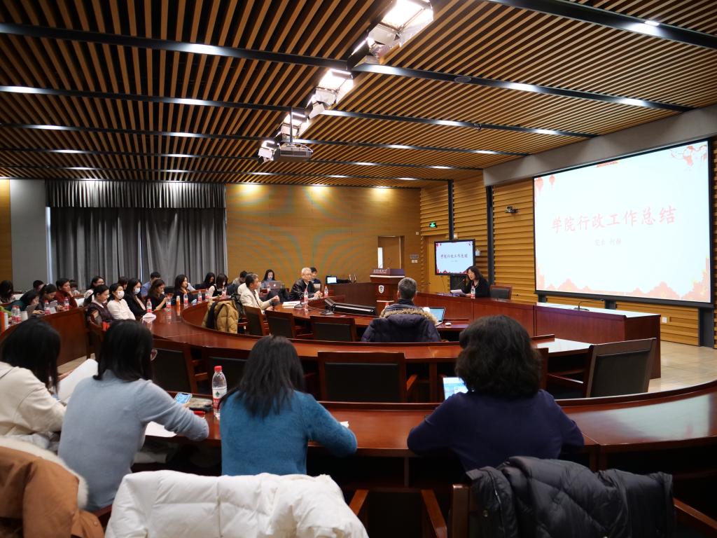 2022年1月7日下午,beat365在线唯一官网在图书馆五层学术报告厅召开全体教师大会。会议听取了学院领导班子关于2021年度工作述职,听取了柯静院长做的院务工作报告和党总支书记刘厚广做的党务工作报告。