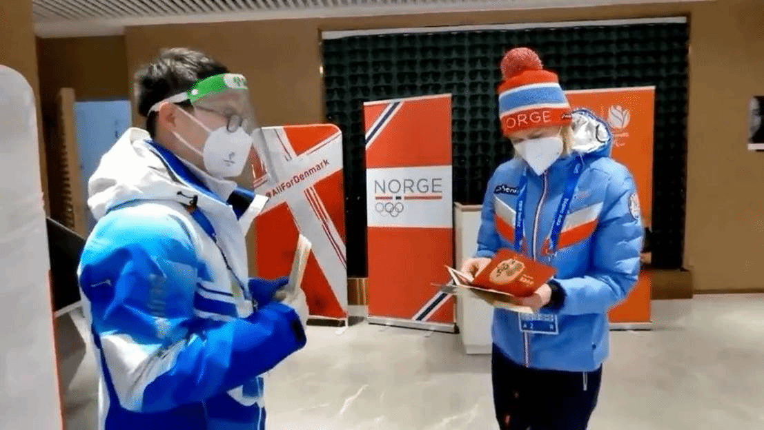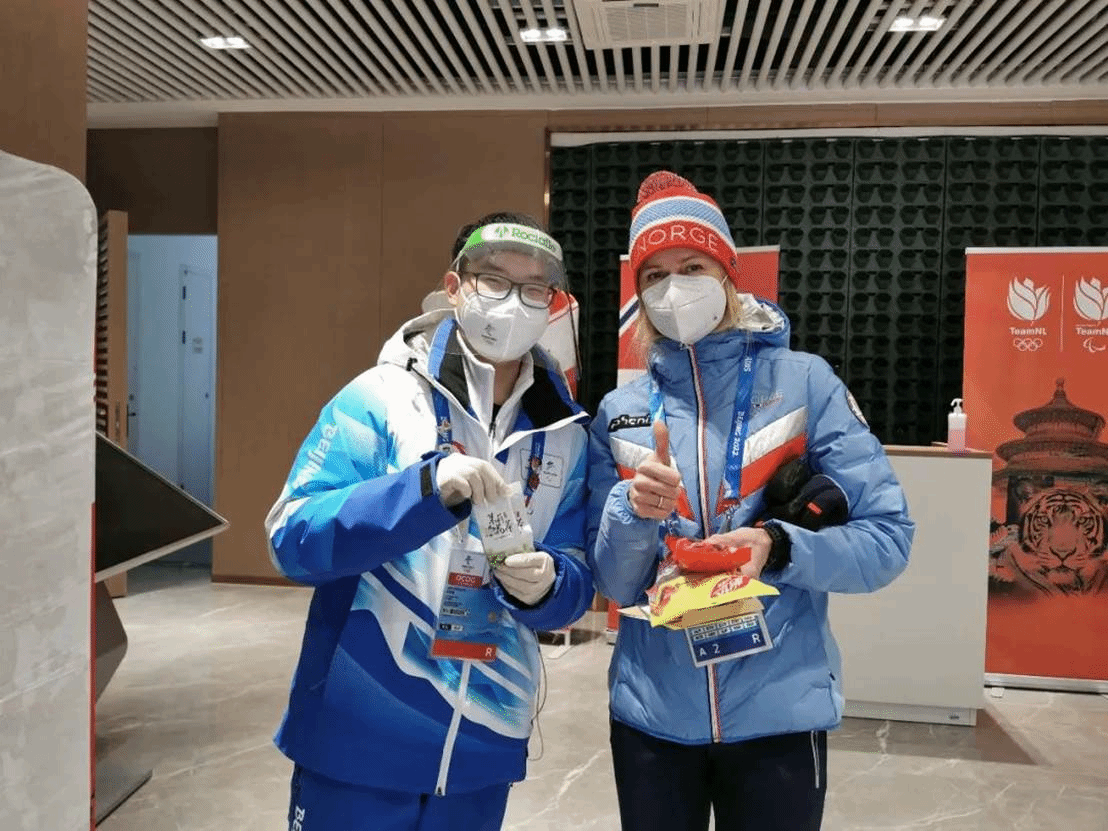 2022年2月1日,beat365在线唯一官网驻北京冬奥村志愿者为参加北京冬奥会的挪威代表团送去新春祝福。