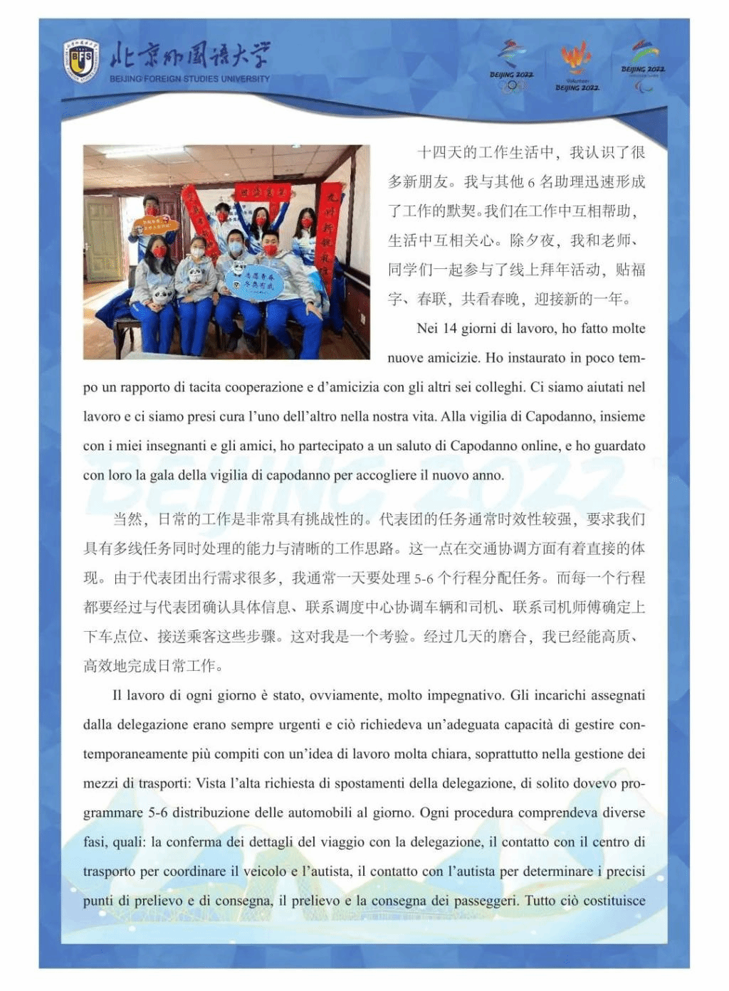 欧语人在冬奥 | 延庆冬奥村NOC助理操兰漪冬奥日记: 冬奥盛会中的一片小小雪花