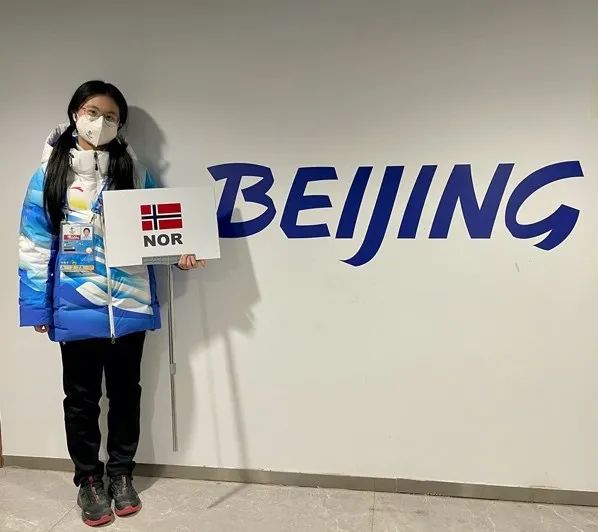 作为一名北外挪威语专业的学生,能够在本次冬奥会中被分配到服务于自己的对象国国家的代表团是一件非常幸运的事情。还记得第一天见到挪威代表团北京村领队时,我紧张且又羞涩地说出“Hei!Jeg heter Silja. Hyggelig å treffe deg.”(你好,我是Silja。很高兴见到你。)的时候,在她热情回复的那一瞬间让我感受到学习一门外语并且在实际生活中运用,是一件多么幸运的事情。但是我知道,由于这是我们第一次参加这么重大的国际赛事,熟练地使用挪威语参与相关工作也是一项巨大的挑战。因为每一项同代表团一起完成的任务都关系到运动员的训练和比赛,所以我经常会担心自己会因经验不足而发生失误。但每次遇到情况时,我都能迅速调整好心态,一遍遍地耐心与挪威运动员沟通,他们也都非常友好且善解人意,我的日常工作得以顺利完成。