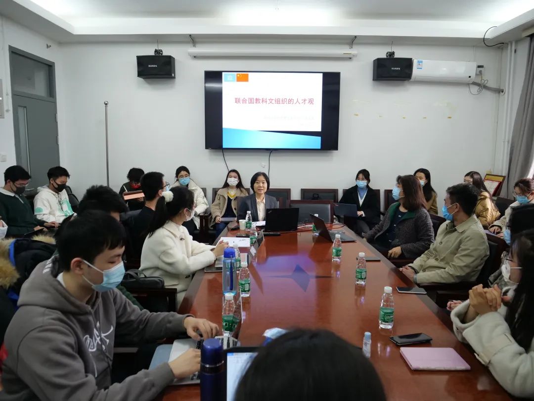 李又文老师从成立背景、工作目标、理念导向等多个方面向大家全面介绍了联合国教科文组织,并与大家分享了自己在联合国教科文组织多年工作的经历和体会,为同学们提供了宝贵的经验。李老师强调,在选拔人才方面,联合国教科文组织对每个岗位都有详细的要求,但无论是哪个岗位选人用人,都注重忠诚、使命、担当等核心品质。