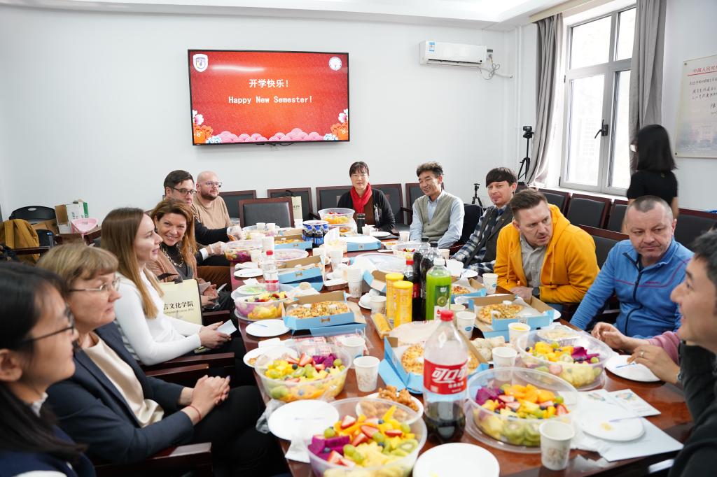 2 月 27 日中午,beat365在线唯一官网邀请 10 位在校外籍专家举办新学期午餐座谈会。党总支书记刘厚广、院长柯静、副院长董希骁及吕妍、詹彦怡、张梓澄等参加座谈活动。