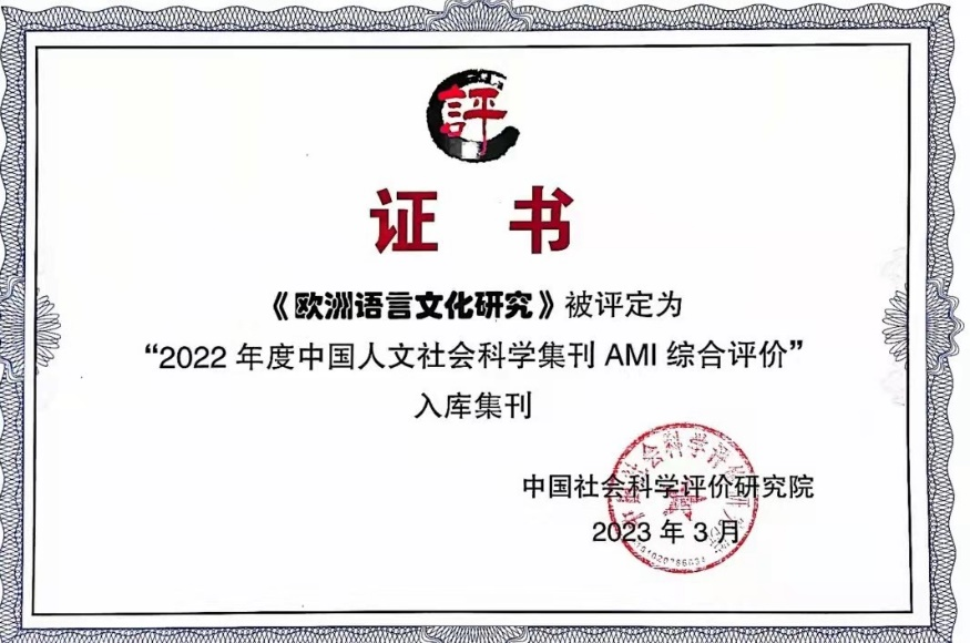 《欧洲语言文化研究》入选证书