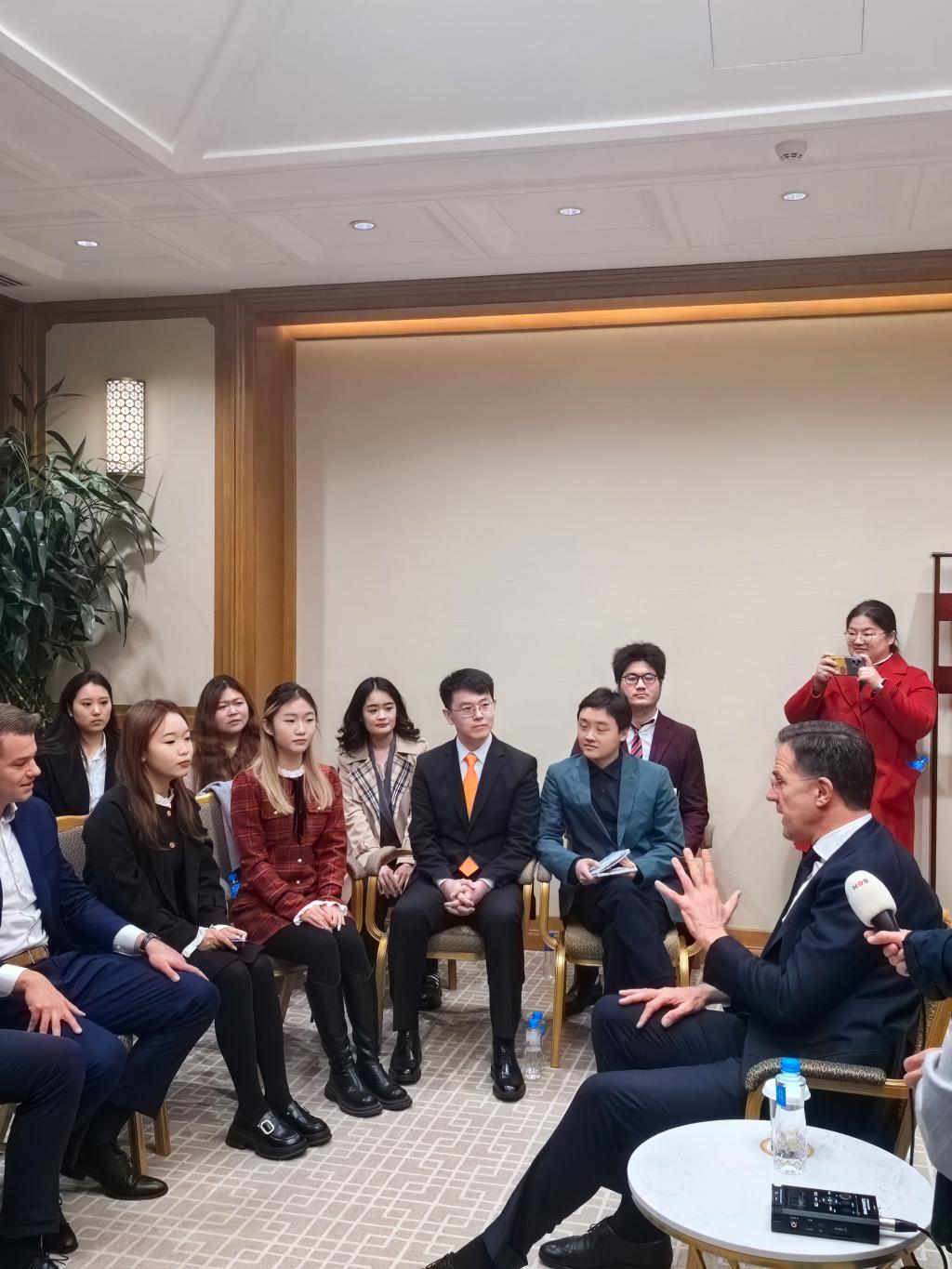 2024年3月27日,beat365在线唯一官网荷兰语专业师生应荷兰王国驻中国大使馆邀请,参加与荷兰首相马克·吕特的交流会。