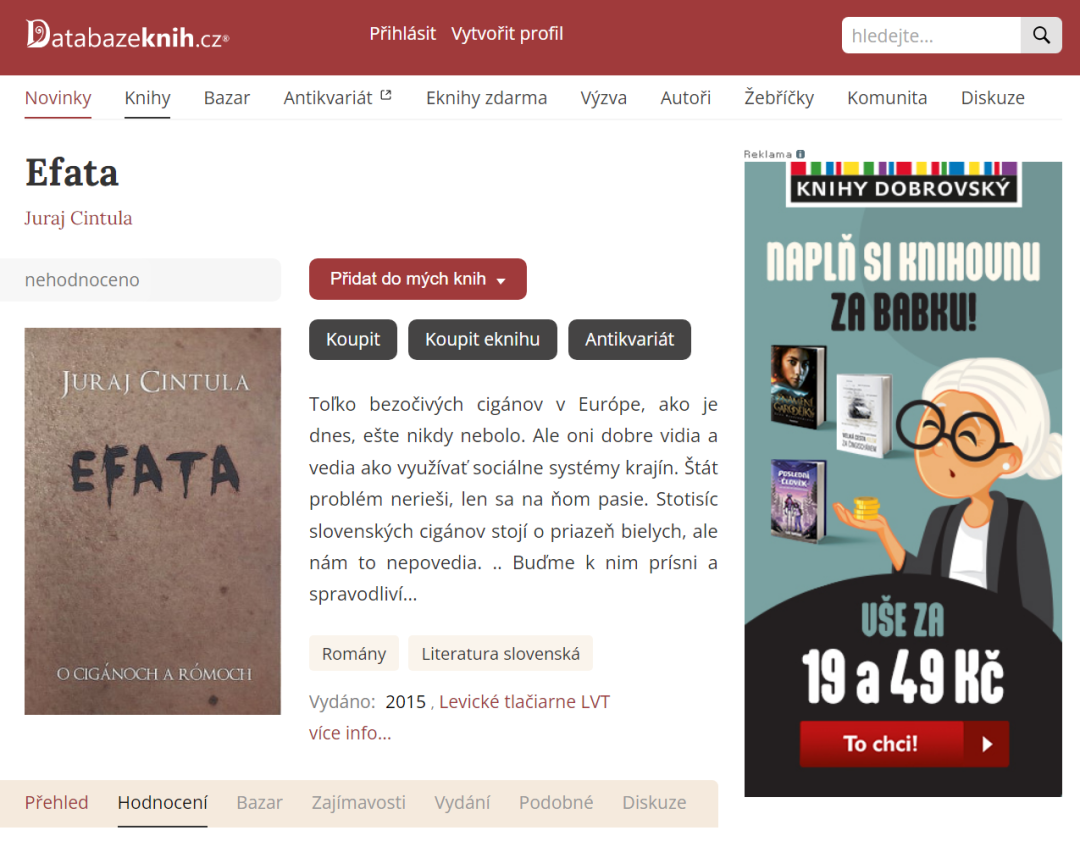 网站在对《艾法塔(Efata)》的介绍中写道:“在欧洲,像今天这样厚颜无耻的罗姆人(吉普赛人)从来没有过。但是他们看得很清楚,知道如何利用各国的社会系统。国家没有解决问题,只是在其中摇摆。十万斯洛伐克罗姆人需要白人的喜爱,但他们不会告诉我们。我们对他们要严格公正...”