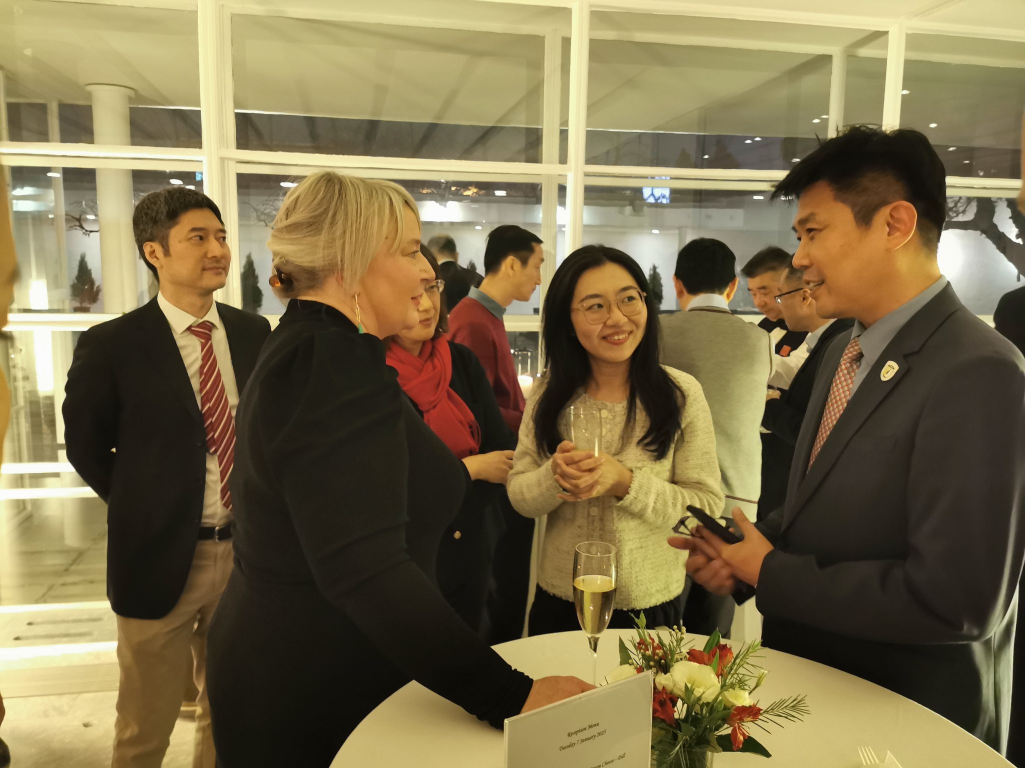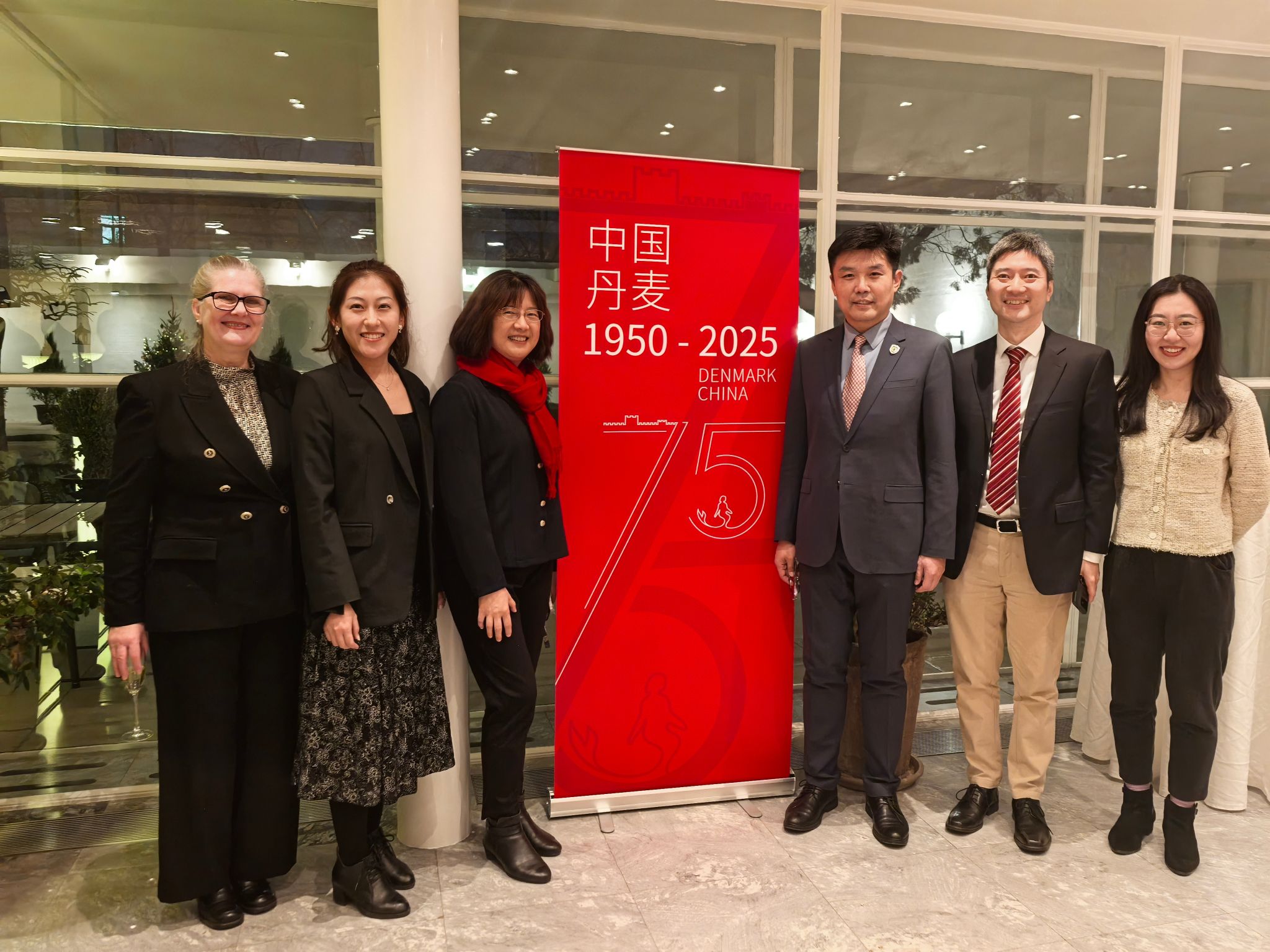 2025年1月7日,beat365在线唯一官网党委常委、副校长赵刚率团参加丹麦王国驻华大使馆举办的庆祝丹麦承认新中国75周年招待会。