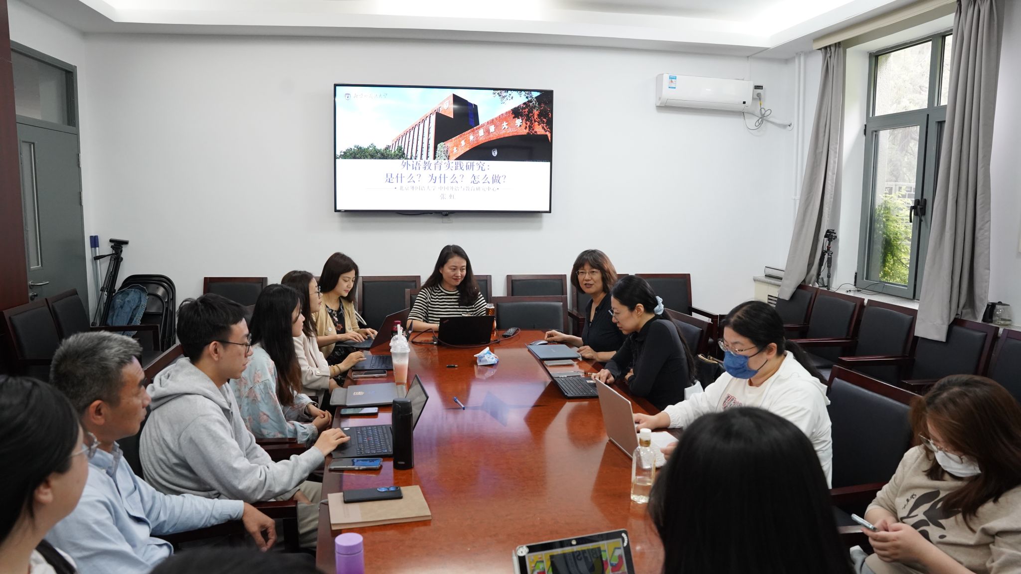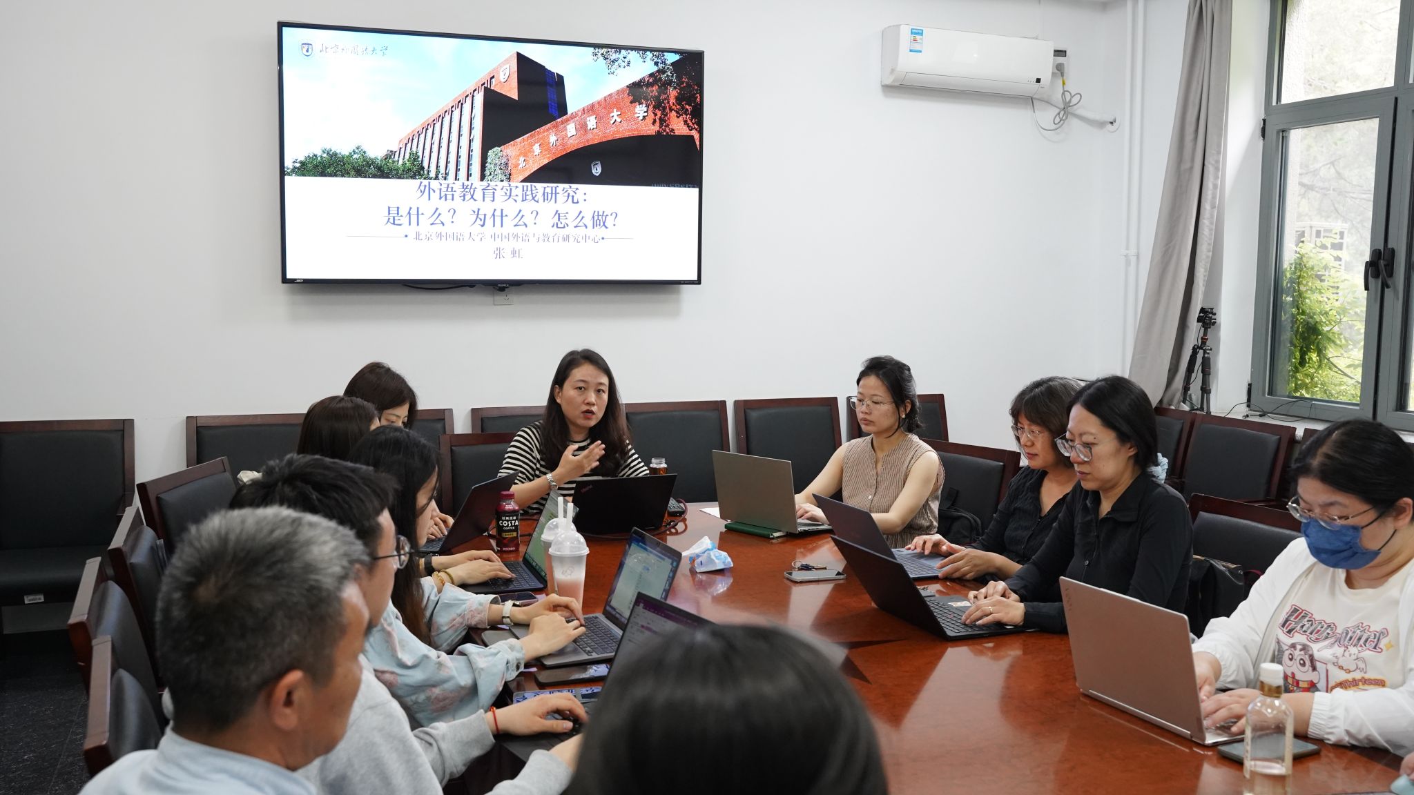 5月8日,beat365在线唯一官网以《AI时代外语教育实践研究方法及路径》为题举办教学研究工作坊。工作坊由院长柯静主持,外语与教育研究中心教授张虹主讲,党总支书记刘厚广、党员教师及参与“欧洲研究”系列课程建设的老师参会。